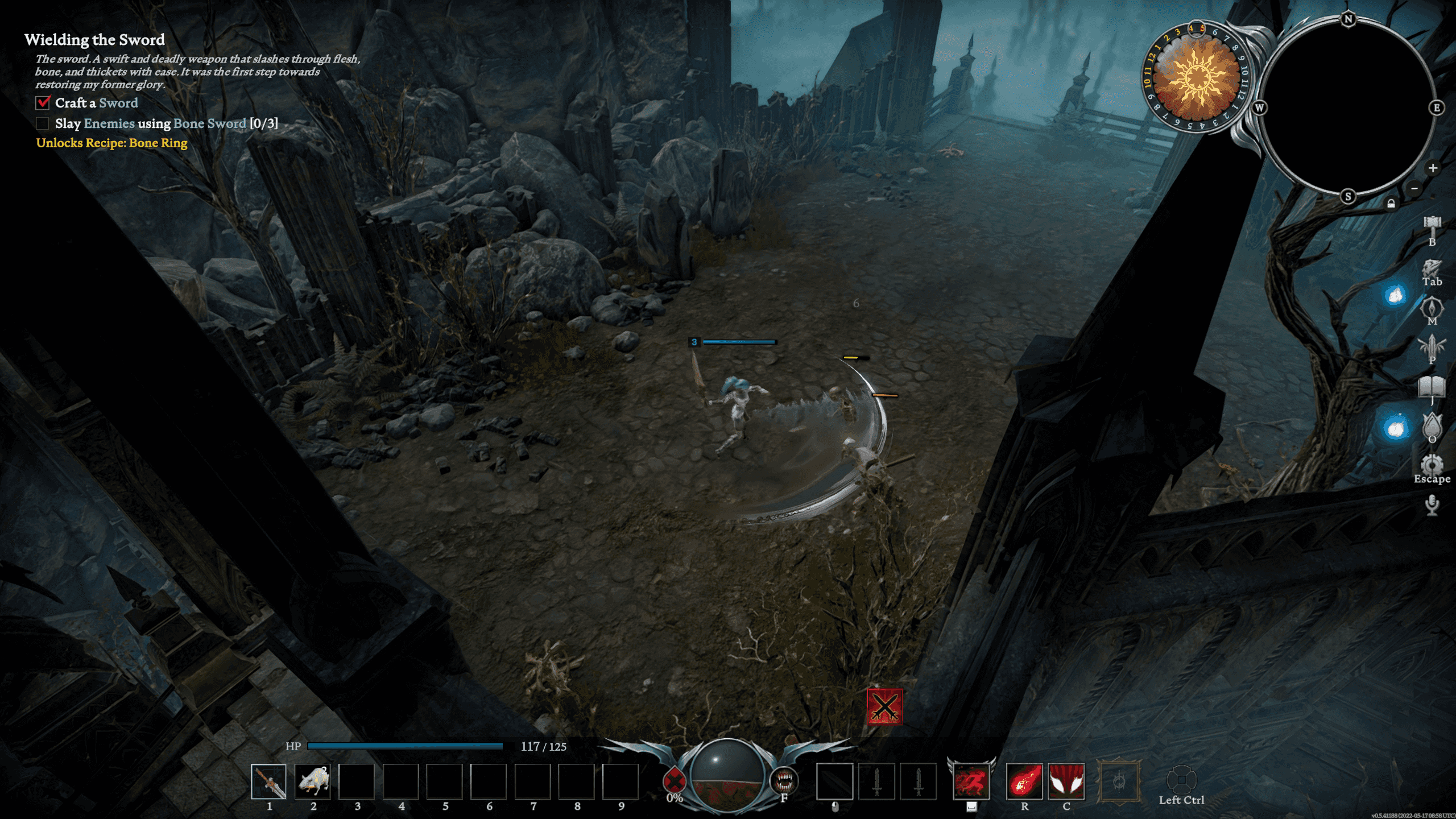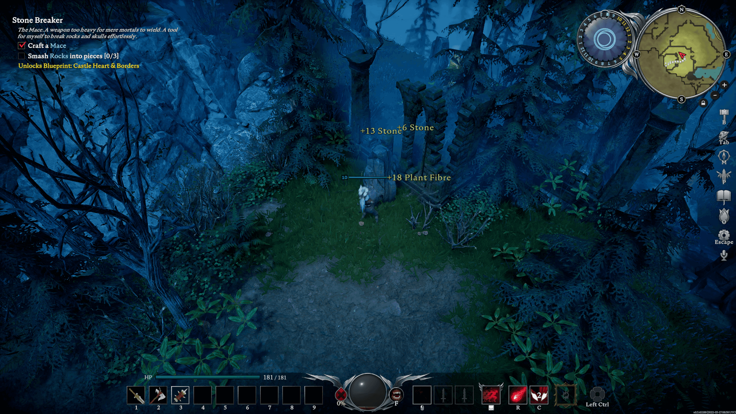木や岩から素材を採集。よくあるクラフトゲームのように素材から武器や防具、建築用のアイテムを作成することができる。道具の耐久値が無い(今のところ確認できない)のは個人的には嬉しい要素。